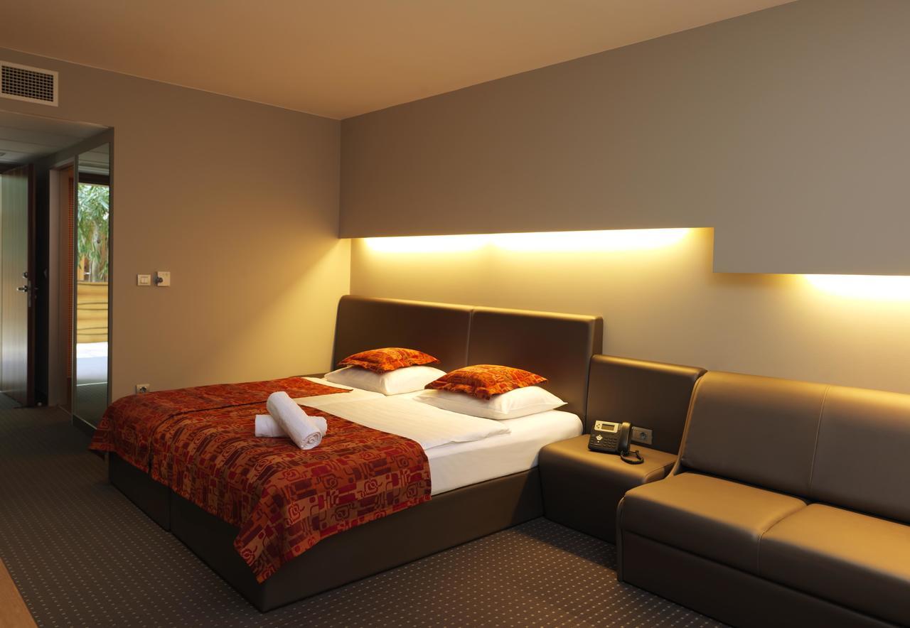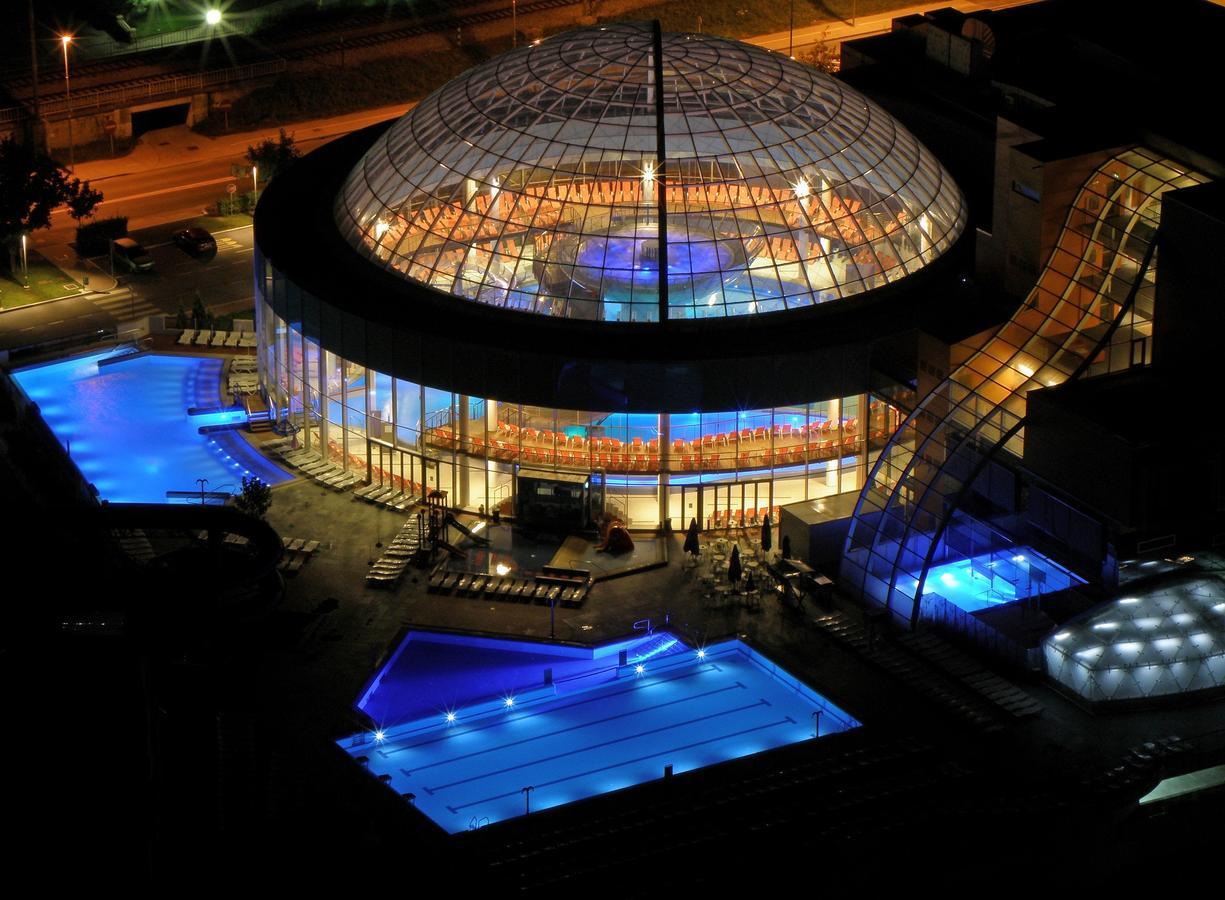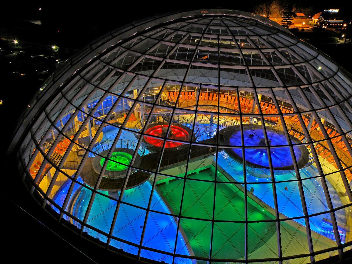 Il centro termale dell'albergo comprende varie piscine interne ed esterne molto ampie, in esterno uno scivolo per bambini e adulti e un divertente complesso di tubi che sfociano nella piscina esterna, varie vasce idromassaggio all'interno, inoltre mondo delle saune, bagno turco, un'area fitness e un centro benessere con possibilità di scelta tra vari tipi di massaggi e trattamenti benessere e solarium (a pagamento).