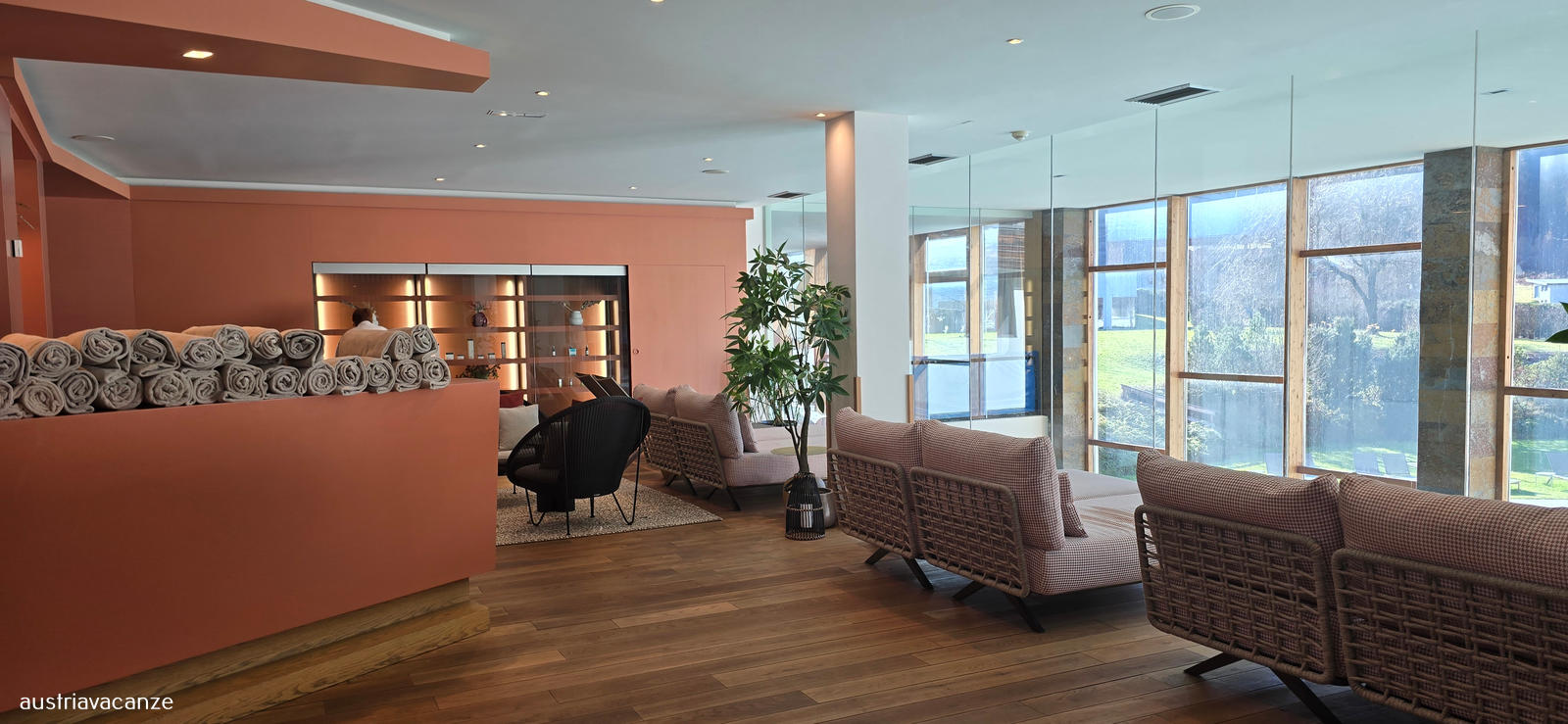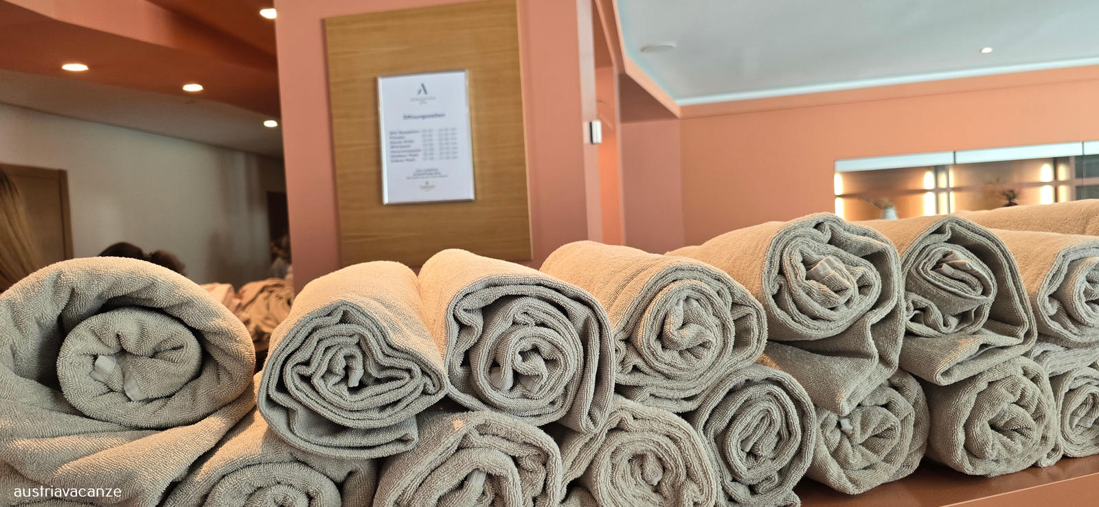 accappatoio e ciabattine in camera e teli bagno nella zona wellness