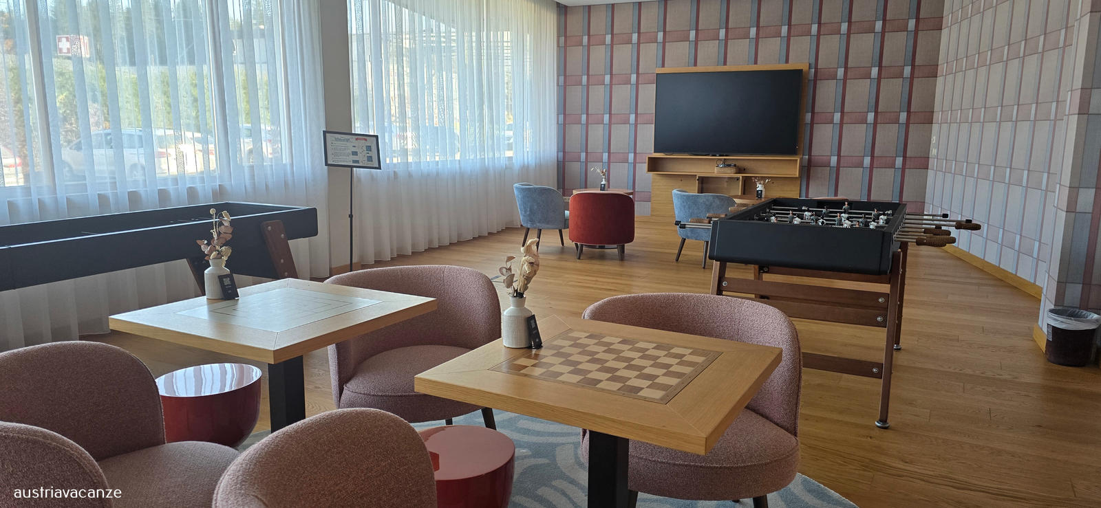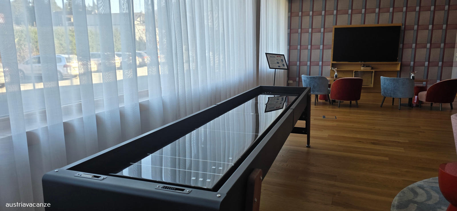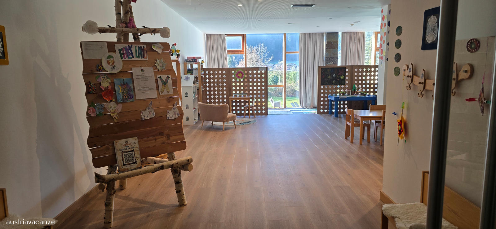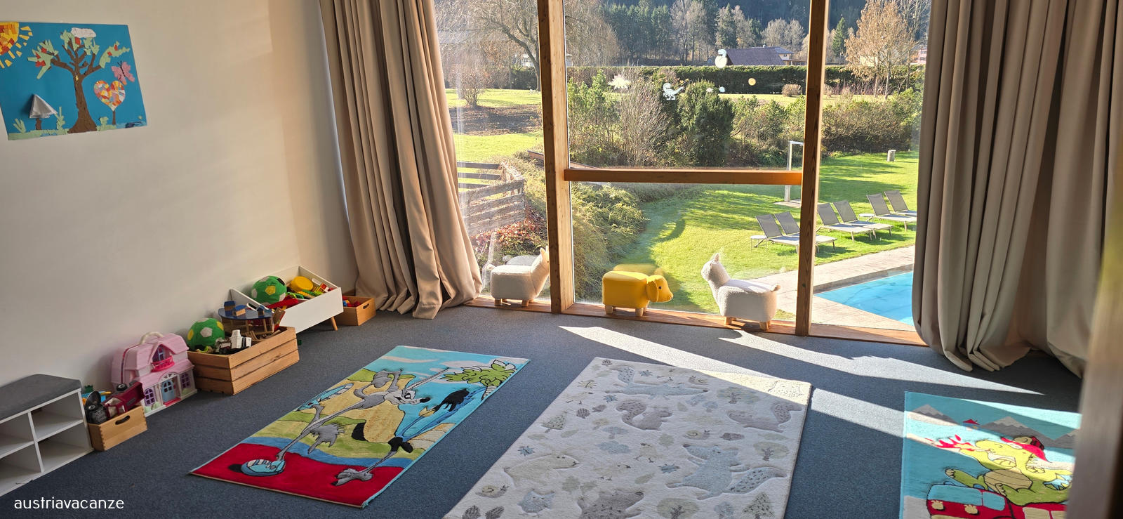 La struttura sorge nell'area sciistica di Nassfeld/ Passo Pramollo giusto sul confine con il Friuli, dispone di terrazza e giardino, un deposito sci e un accesso diretto alla funicolare che porta direttamente alle piste, giusto alle spalle dell'albergo.